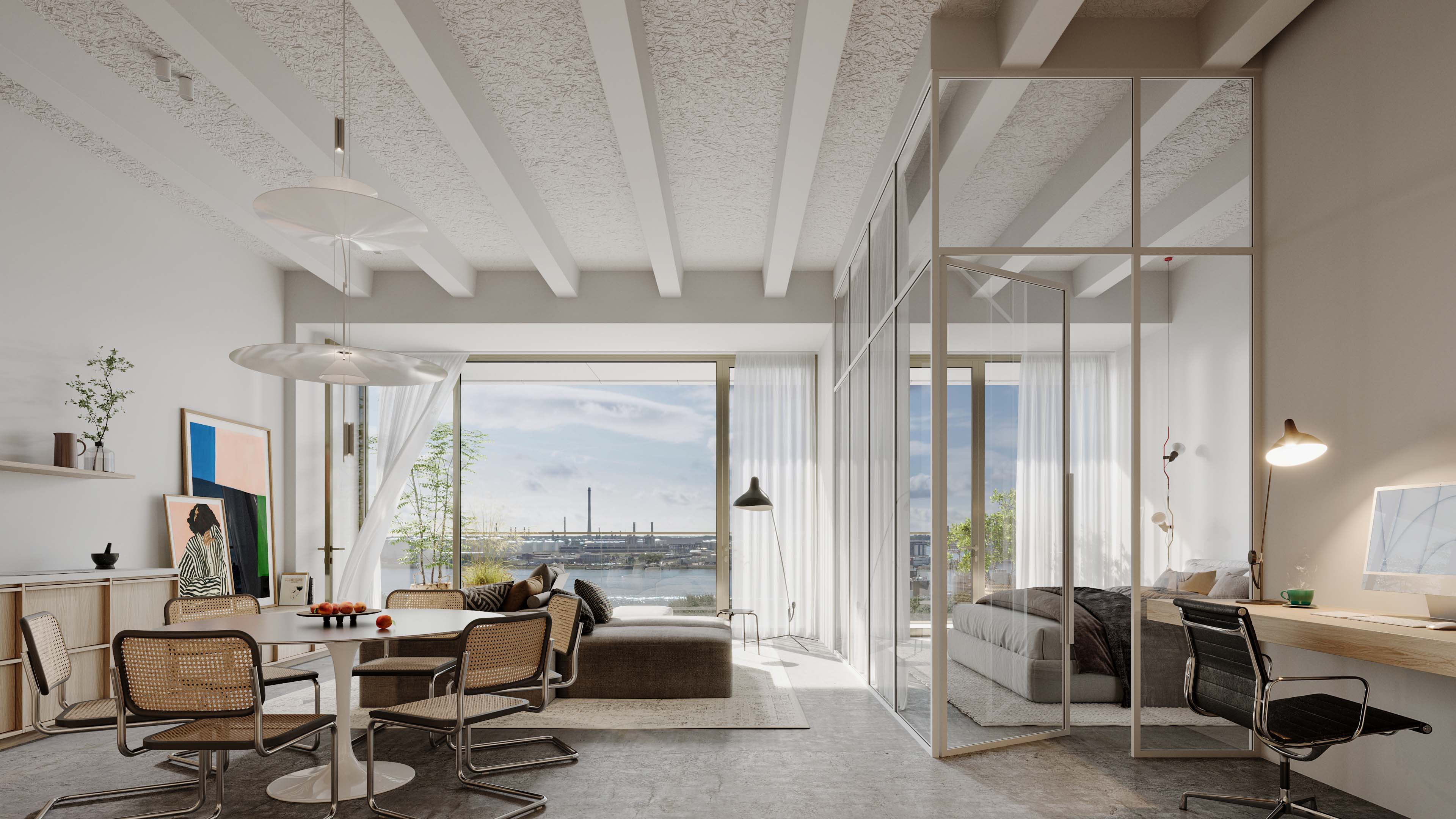 LAB brengt groots en karakteristiek wonen samen in een voormalig laboratorium aan de Maas in Vlaardingen. Dit robuuste, industriële gebouw wordt getransformeerd tot unieke loft- en panorama-appartementen met royale woonoppervlaktes van circa 90 m² tot maar liefst 230 m² en buitenruimtes tot 118 m². Denk aan indrukwekkende plafondhoogtes van ca. 4 meter, grote glaspartijen van vloer tot plafond en een adembenemend uitzicht over de Maas en de skyline van Rotterdam.